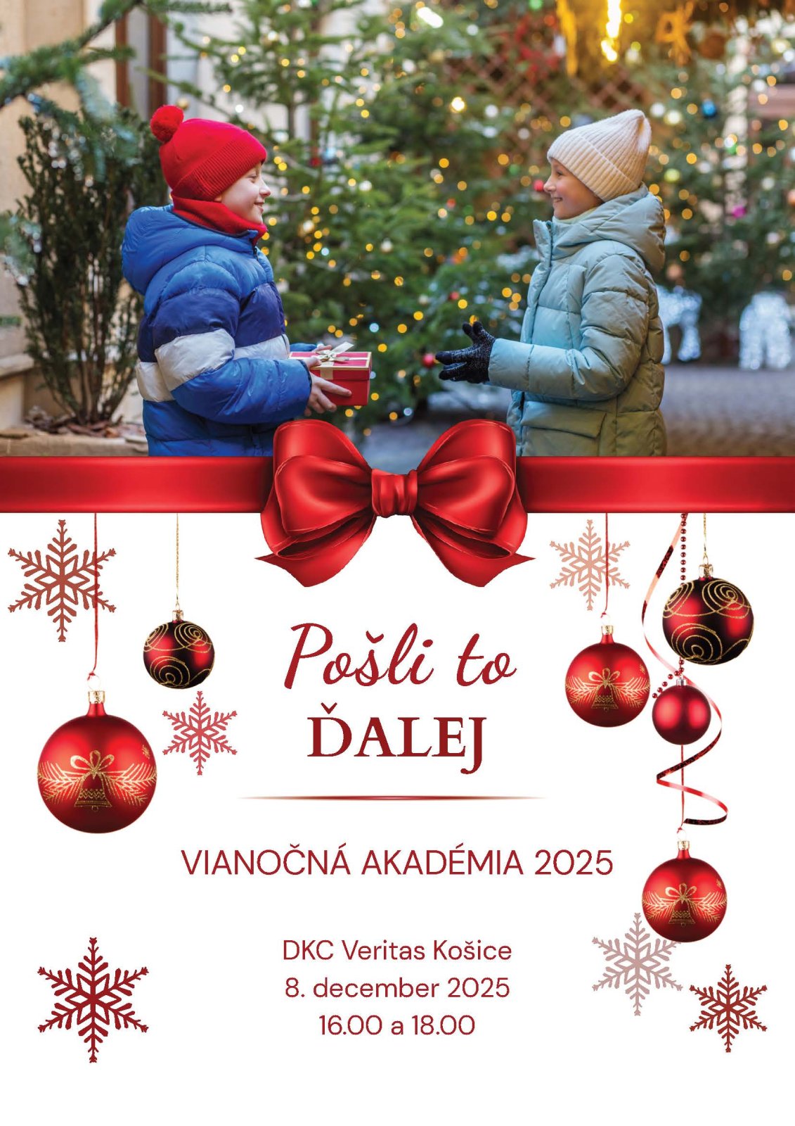 V čase predvianočných príprav a túžobného očakávania prekvapení, jedno také úprimné pripravili žiaci pre svojich rodičov, príbuzných, priateľov a širokú verejnosť. Známe i menej známe piesne zaznejú v podaní sólistov speváckeho oddelenia hudobného odboru, školskej kapely YOUNGLINGS, učiteľskej kapely a Speváckeho zboru VESNA.