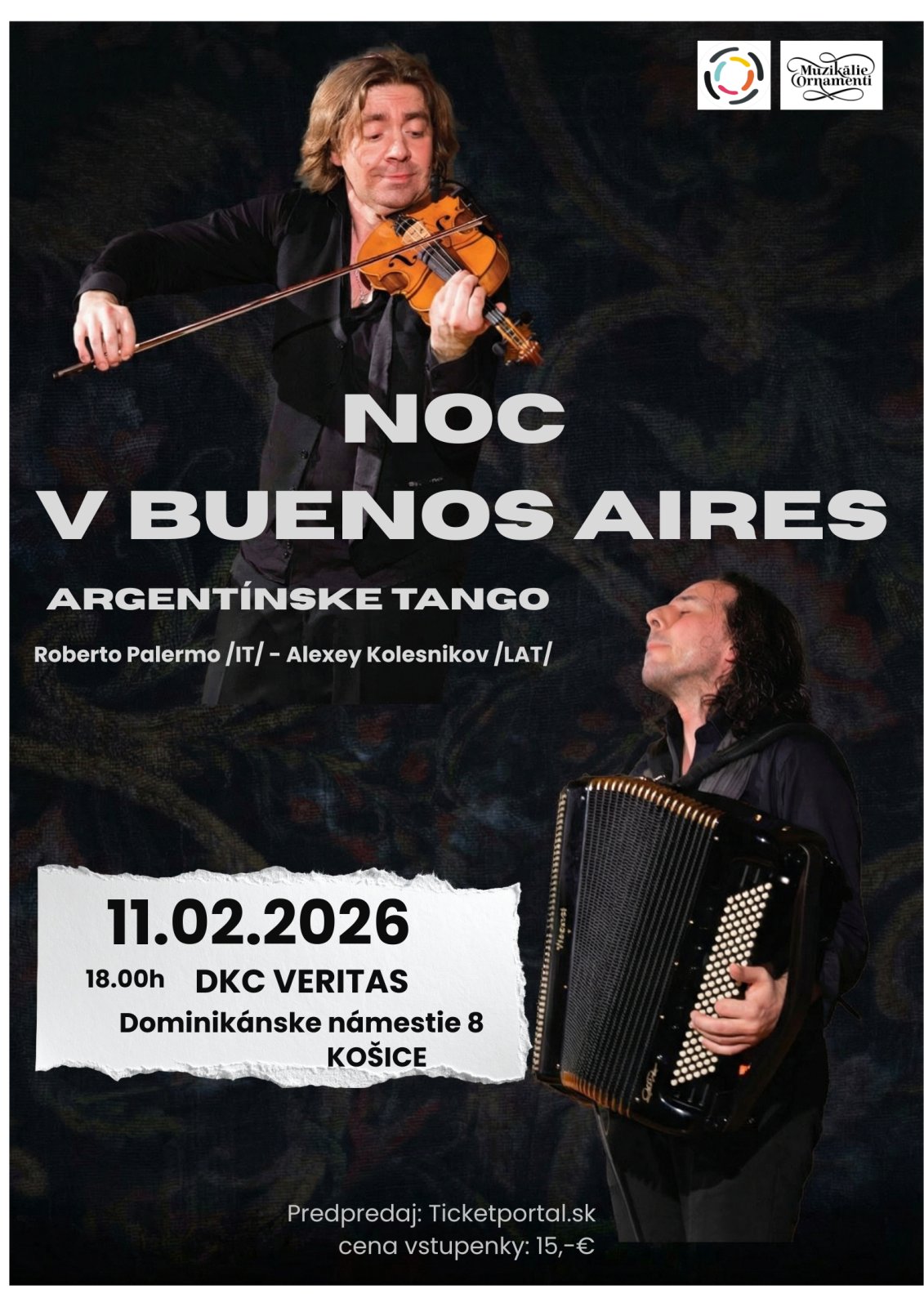 Skladby Astora PIAZZOLLU a Angela VILLOLDA, v ktorých každý nástroj znie ako hlas v podaní famóznych inštrumentalistov Roberta Palerma /akordeón/ a Alexeja Kolesnikova /husle/