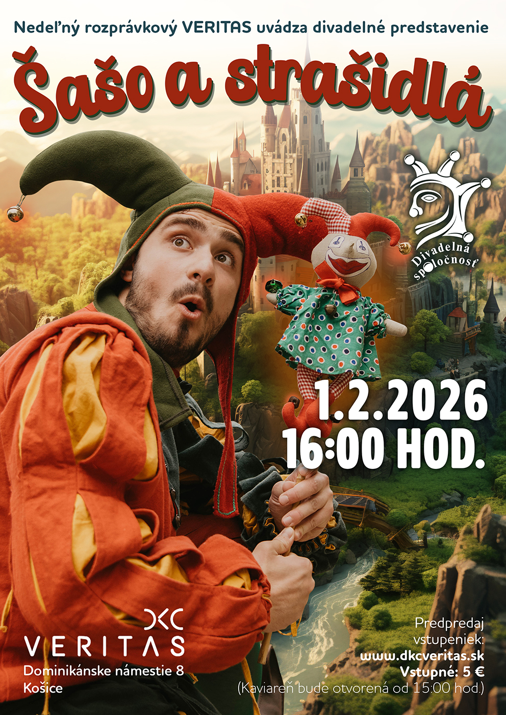 Srdečne vás pozývame na interaktívne činoherné predstavene s veselými pesničkami v podaní Divadelnej spoločnosti z Prievidze. Divadelná spoločnosť je jedinečný divadelný súbor, ktorý sa venuje inscenovaniu rôznych historických tém, príbehov a situácií, rozprávok, či legiend.