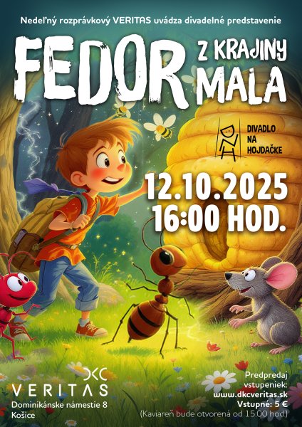 Autorská rozprávka Divadla na hojdačke zo Žiliny o chlapcovi, ktorý sa tak veľmi bál všetkého, že si prial zmenšiť sa, aby ho nikto viac nevidel. Zrazu ho po pleci poklepe mravec a tu sa začína Fedorove dobrodružstvo na lúke, kde stretne mnoho kamarátov z ríše hmyzu. Podarí sa mu spolu s mravcom a pavúkom zachrániť včelí úľ pred útokom potkana?