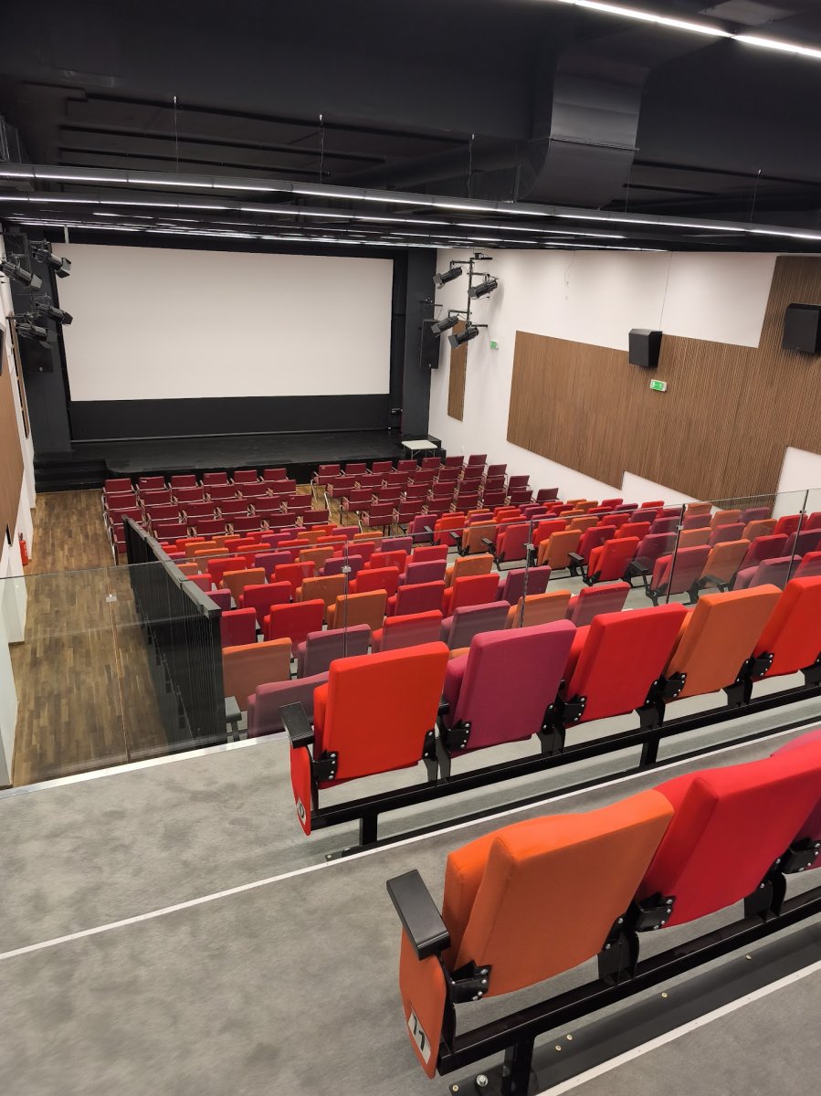 Variabilný priestor disponuje pri „kino sedení“ celkovou kapacitou 234 miest – z toho 182 pohodlných čalúnených kresiel sa nachádza v stupňovitom vysúvateľnom hľadisku a na balkóne). Ďalších 52 miest je k dispozícii vo forme pohodlných kresiel pod pódiom.